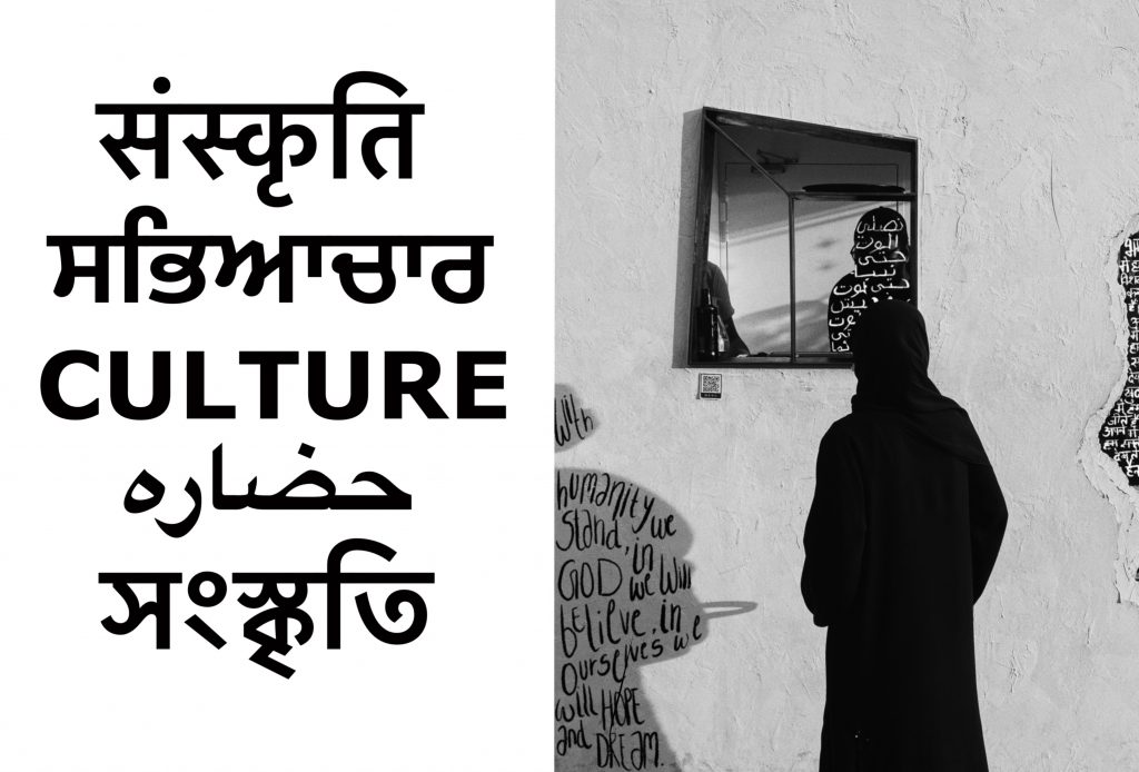 Culture – page 4 – this artwork represents unity, difference, and how about all those as people, as humans we still rise together. Along with being written in English, the word culture has been written in Sanskrit, Punjabi, Arabic, and Bengali. This artwork of mine is with special focus on India and how even though we are such a diverse country we are unified together on so many bases one of them being our culture, our religion, and backgrounds. The use of structure typography alongside hand handwritten codes on the photo is the contrast that I have achieved in this artwork
