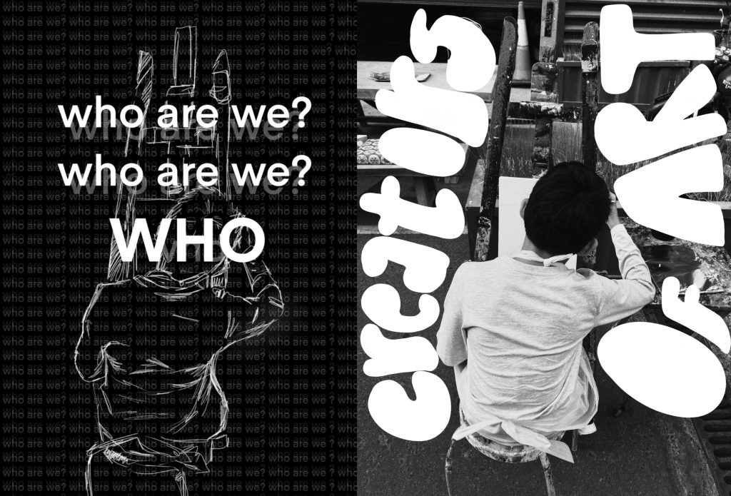 Creators of art – page 7 – this work is one of my biggest inspirations from David Carson. While I’ve been able to manipulate and use repetitive typography in this heart work alongside a very block font, on the other hand, I’ve been able to use I lose handwritten font to answer the very bored, strong an old-time question ‘who are we ‘. The child of the easel is a representation of all the future artists discovering who they are.