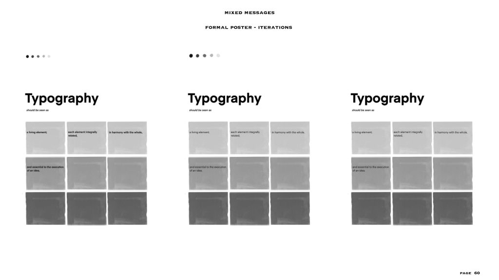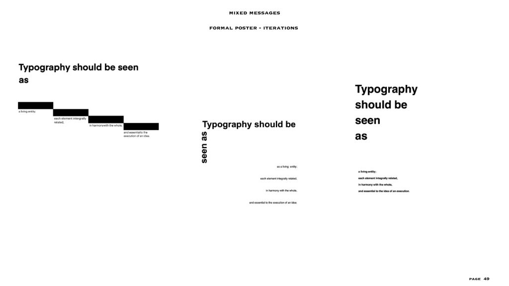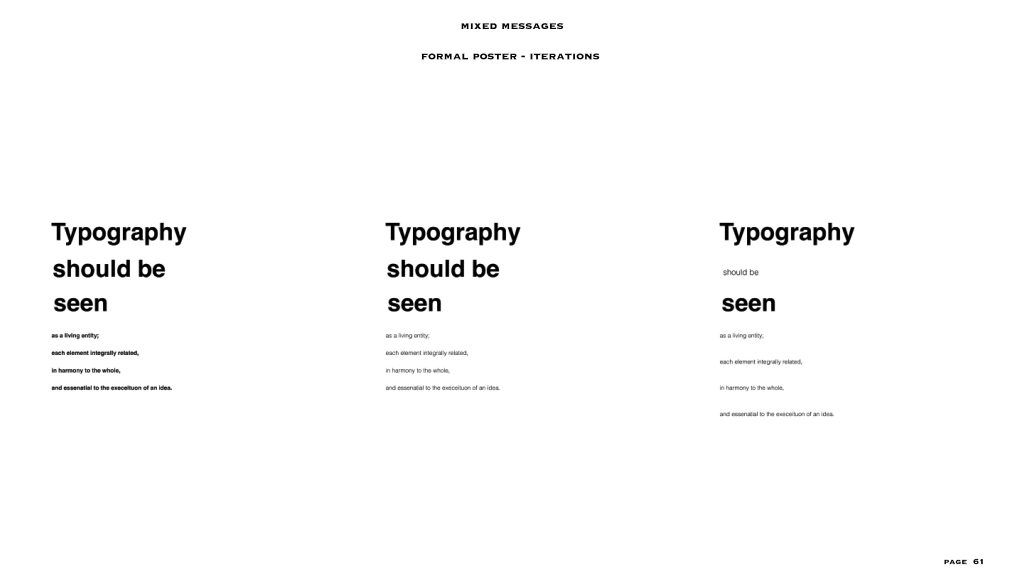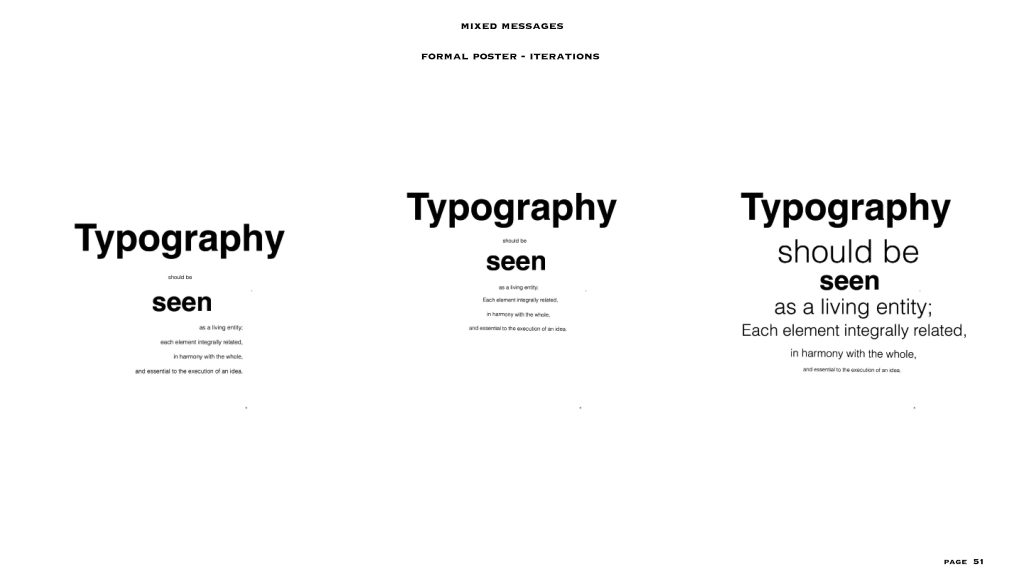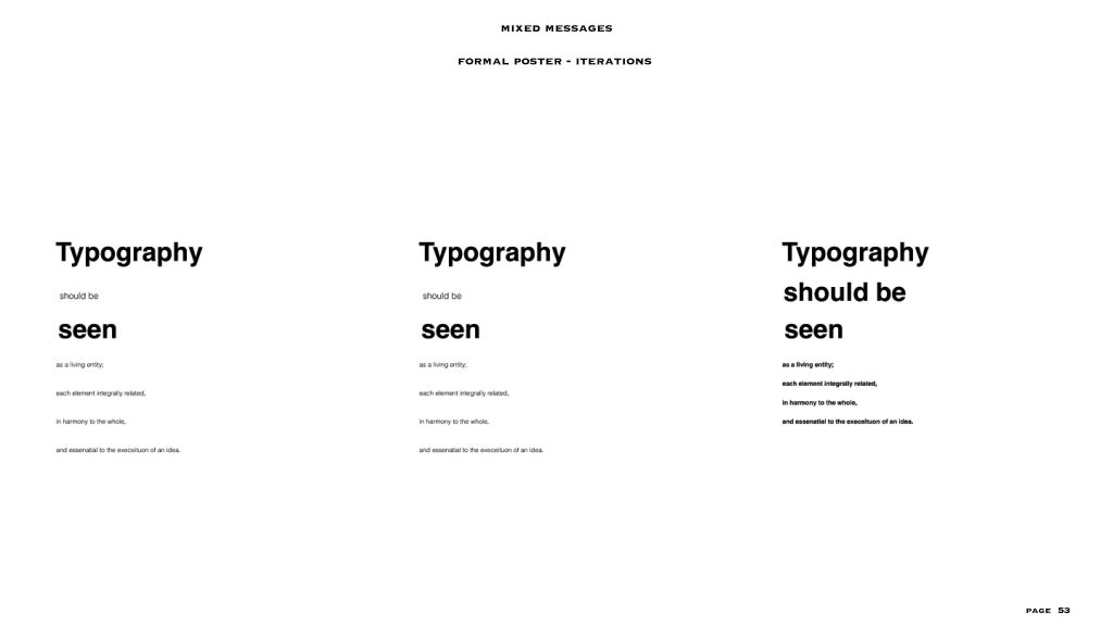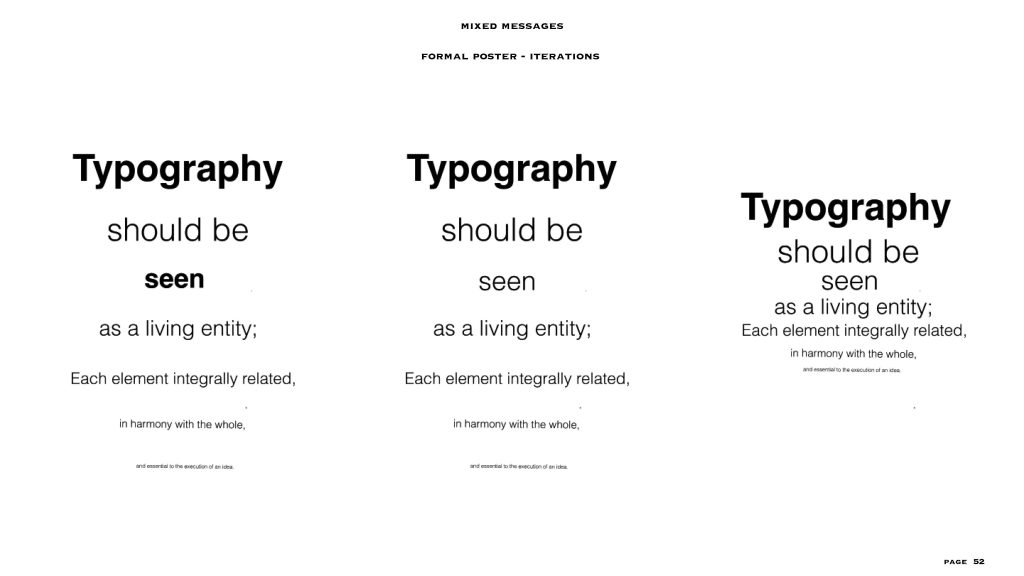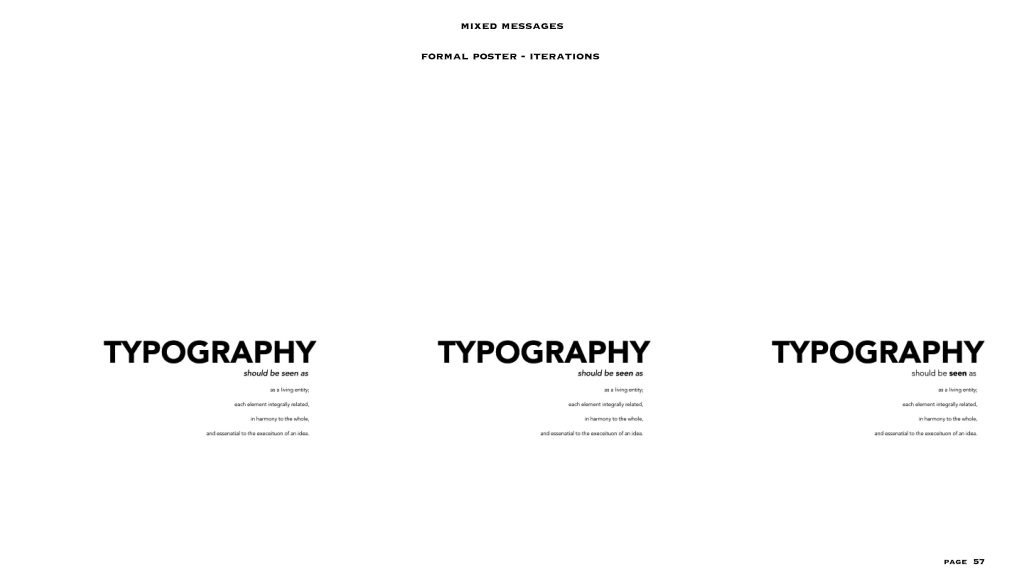 this project gave me the freedom to a level, the text and the colour scheme (black and white) were already given to us. I had to make two posters – one expressive and one formal, in my visual summary you can see there are at least 40/45 iterations for each style of poster. I personally love to create posters or any editorial designs and illustrations, so I could really experiment with this project. even though the lines for experimentation were a bit constrained I was able to explore a lot within the few things given and I feel like that made me really understand the concept of typography, colour balance and placement. i added layers to each project especially the expressive poster through means of composition, treatments, affectations, manipulation processes and much more.