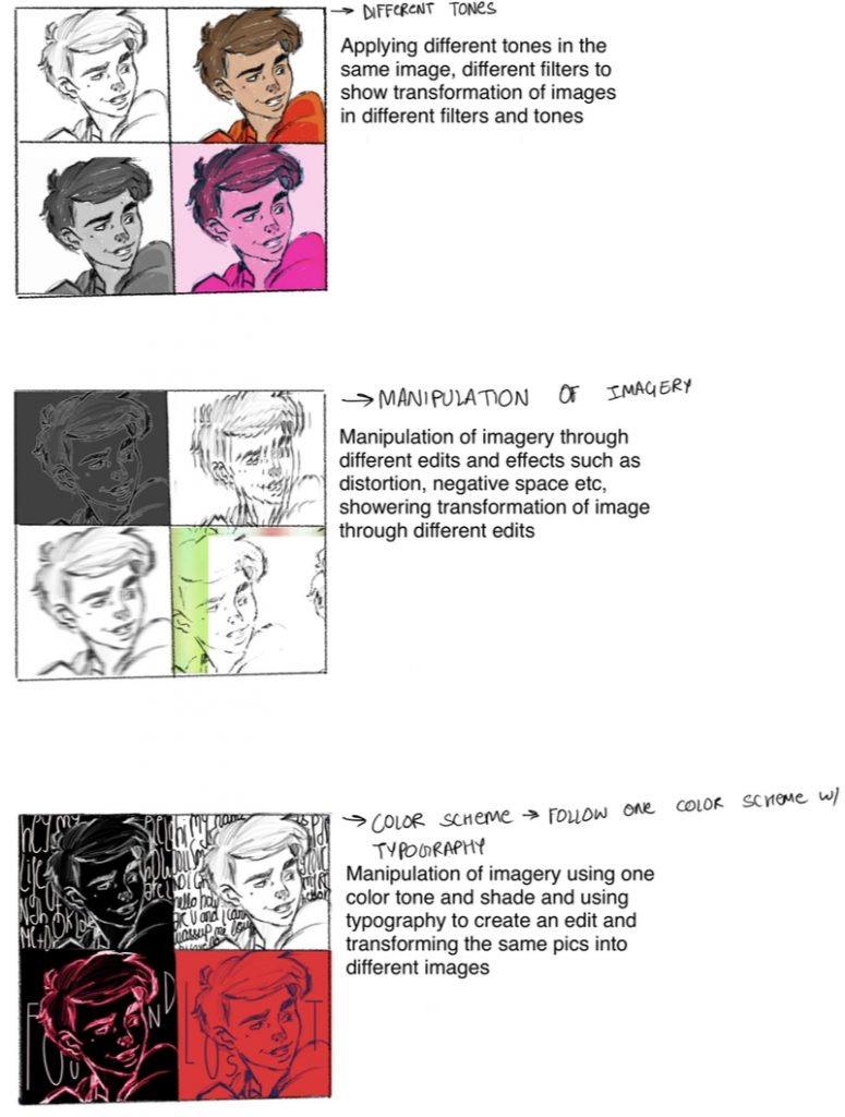 The word transform has various meanings to be – both positive and negative as well. Transformation to me means changing of a particular thing, development, growth, depreciation or just minute differences between pictures is also some level of transformation for me. In this project for me, transformation means changing the photos I’ve clicked through changing the image tone, color, filter, manipulation of imagery, typography, and distortion of the image. Transformation of each of these images through all these edits will take a new perspective on the word transformation as well and will also show all the skills I’ve learned this year through my course. I will be making a sixteen-page photo book for my outcome, and all the photos that will be edited will be clicked by me and it will all be my original editing. I will be showing transformation by showing different edits of my pictures to show different perspectives.