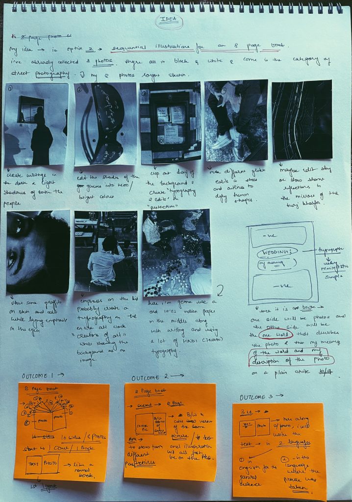 For my project, I have chosen the second topic, of sequential illustrations and text for an 8 page book. Through the pictures I have uploaded below, my trial and error methods on my photography can be seen. I have used manipulation of imagery and manipulation and repetition of typography. I plan on sticking to a minimalistic colour palette for each page in coordination with the image of that specific page. I will be using minimalistic typography styles and creating a lot of line drawings as well. While using the given fonts I will also be using my own handwriting to manipulate the typography on the image. My main focus is to keep a monochromatic colour scheme with the burst of one single colour in every page. I have decided to go with the traditional page layout, with the image on one side and the text on the other. The key moment in my research and idea was when I started editing my pictures and realised the pattern of typography and colour palate I wanted to keep which would also define my entire project. Another important realisation was when I decided that each graphic illustration/image of mine will have a one word description an idea, which will not be related do any other image in the eight page book in anyway .Thus, each illustration and each page will tell its own story.